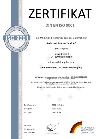 Wir sind ISO 9001 zertifiziert und werden ausserdem von diversen Kunden zusätzlich auditiert.